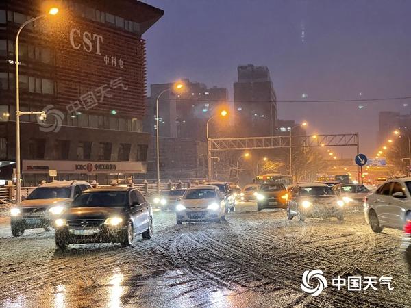 北京今晨路面積雪較明顯。(圖/中舞蹈場地國天氣網 王曉)